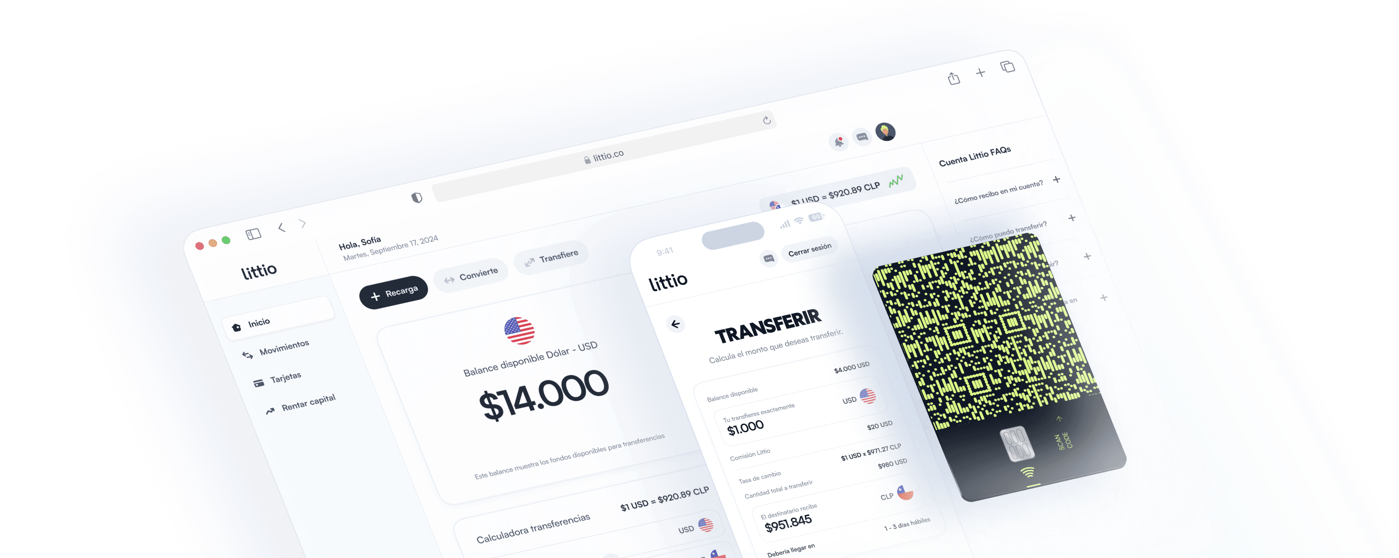 Guarda tus USD en tu cuenta Littio sin límites, sin cuotas de manejo mensual y transfiere a tu banco local